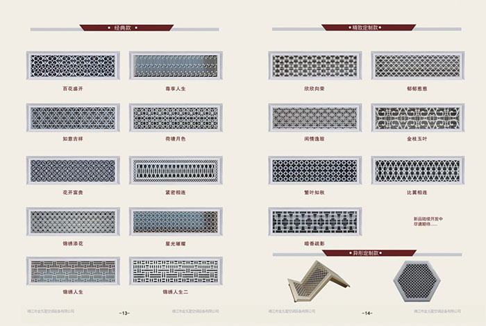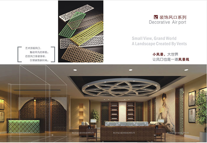 可定制各尺寸各图案的花式风口。颜色可定制。